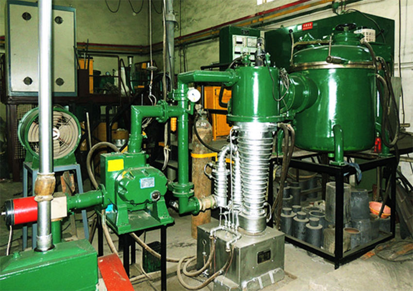 沈陽有色擁有 ZGJL0.1-200-500型 ZG0.050型二臺真空感應電爐,可完成多種金屬及合金的真空及非真空熔煉